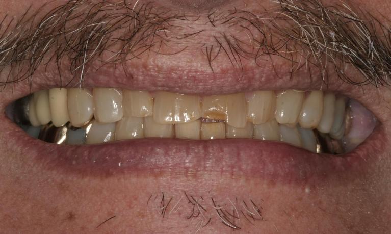 After 40 years of service, this bridge to replace missing anterior teeth needed to be replaced. The new porcelain bridge provided a youthful appearance and rejuvenated his smile.