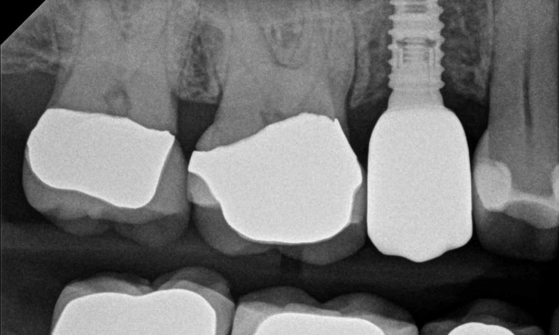 This wonderful patient came to us all the way from Colorado to have a dental implant done. At her first evaluation appointment, an x-ray was taken and Dr. Jordan determined that a minor sinus lift was needed to allow room for a dental implant. The sinus lift and insertion of the dental implant went perfectly! After healing, a tooth colored crown was placed on top of the implant and as you can see, it looks very life-like. She was very pleased.