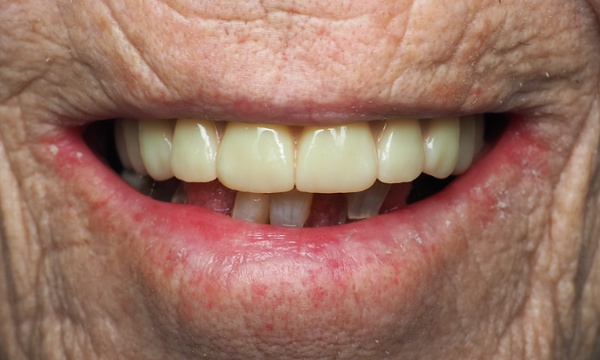 This elderly patient came to us unable to wear her upper denture. Her lower teeth were loose and failing. She elected to invest in herself and had all of her upper teeth replaced with dental implants. These can only be removed by a dentist. She has completed the upper arch and will start on the bottom teeth now. The result is absolutely life changing!